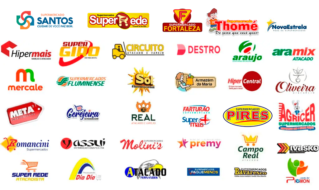 Nossa atuação inclui redes como Hipermais, Super Giro, Circuito Atacado e Varejo, Destro, Araújo, Aramix, Supermercados Fluminense entre outras marcas expressivas em suas regiões.